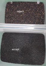 When machine starts,black beans in hopper under the action of vibrator is uniformly distributed into each chute. While black beans are dropping,the CCD signal is working. If the cameras catch unqualified bean or impurities in the beans, the ejector will blow the defective beans into the hopper.